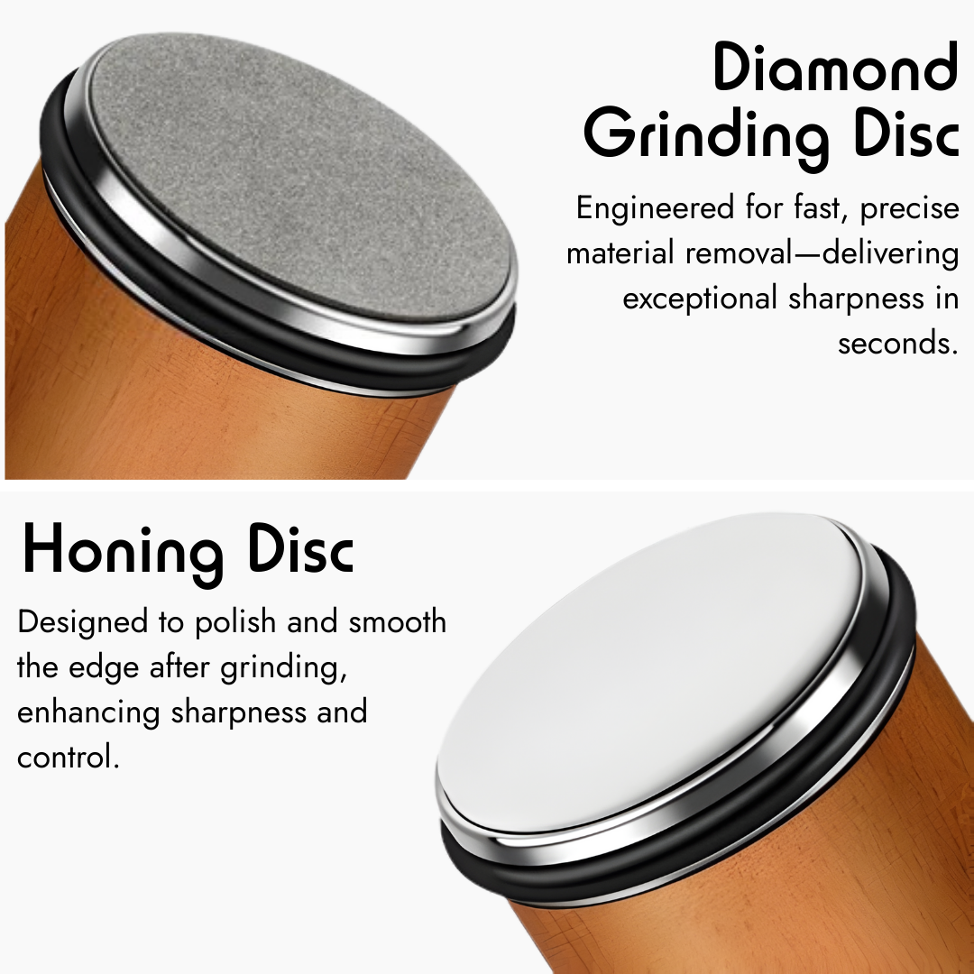 The diamond disc is designed to last for years with normal home use. It uses industrial-grade, lab-grown diamond abrasive, which wears extremely slowly compared to ceramic or steel. For most users, it won’t need replacing under typical sharpening routines.