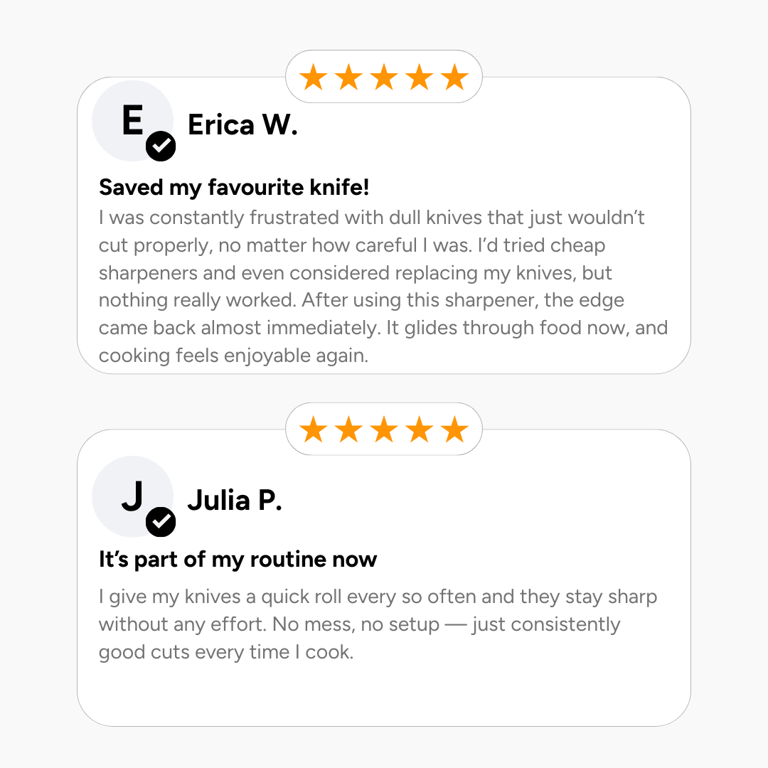 For most home kitchens, light sharpening every 2–4 weeks is enough to keep knives performing well. If you cook frequently, you may use it more often for quick touch-ups rather than waiting until knives feel dull.